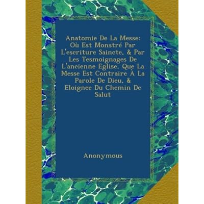 ontents in Anatomie De La Messe: Ou Est Monstre Par L Escriture Saincte, & Par Les Tesmoignages De L Ancienne Eglise, Que La Messe Est Contraire A La Parole De Dieu, & Eloignee Du Chemin De Salut PDF Kindle is really interesting content that do not let you miss not to read, other than that we are giving affordable deals according to the contents of your wallet pockets. Anatomie De La Messe: Ou Est Monstre Par L Escriture Saincte, & Par Les Tesmoignages De L Ancienne Eglise, Que La Messe Est Contraire A La Parole De Dieu, & Eloignee Du Chemin De Salut PDF ePub was awarded so many readers will not get bored reading it.